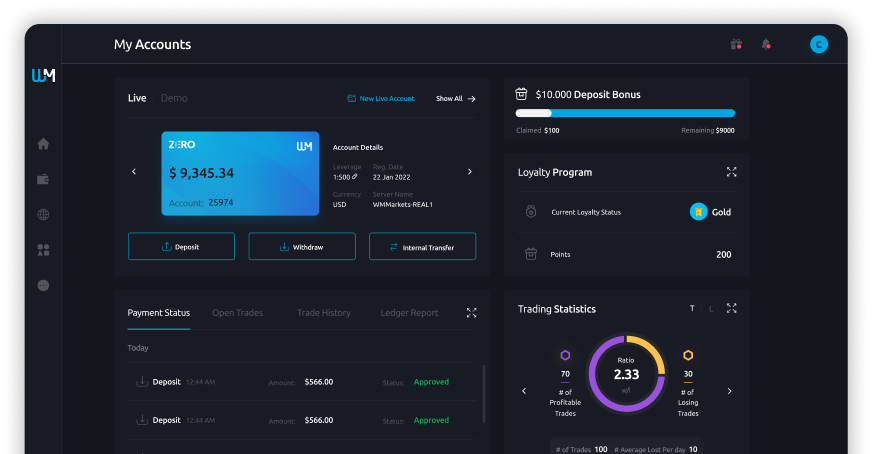 منصة WM Markets لنسخ الصفقات قد تكون غير متاحة في منطقتك. للتحقق، يرجى الرجوع إلى بوابة العميل.